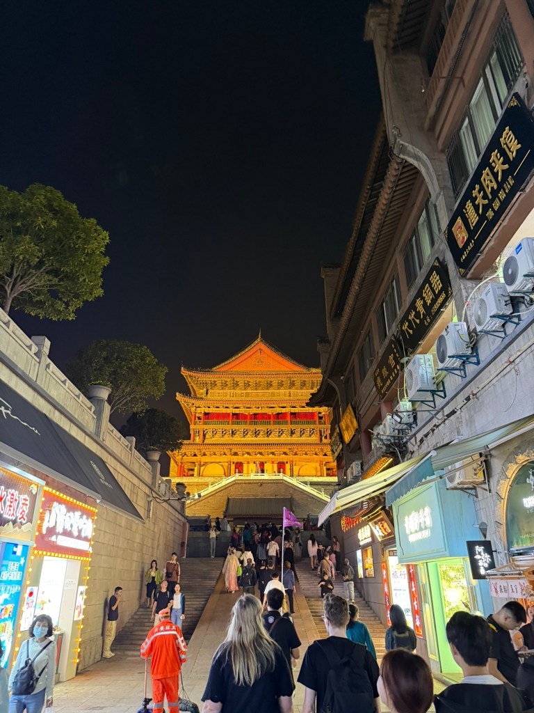 In my last night in Xi’an, even after being out all day (Terra-cotta warriors as well as the cultural show which was overly touristic and a bit of a disappointment), I showered and then headed out to the drum and bell tower in search of, well, anything.