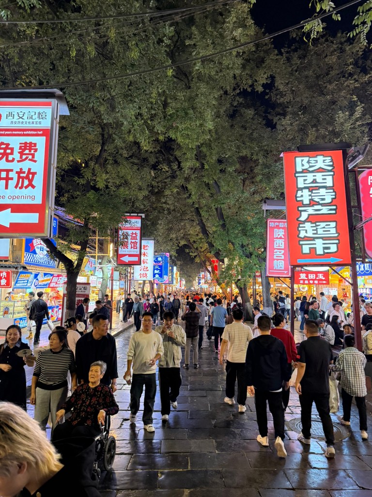 Yesterday we took the bullet train from Beijing to Xi’an. It was about a 6 hour ride, but pretty comfortable overall. Once in Xi’an we took a walk around the city and markets, then went for dinner at a shop off the main drag of the Muslim markets.