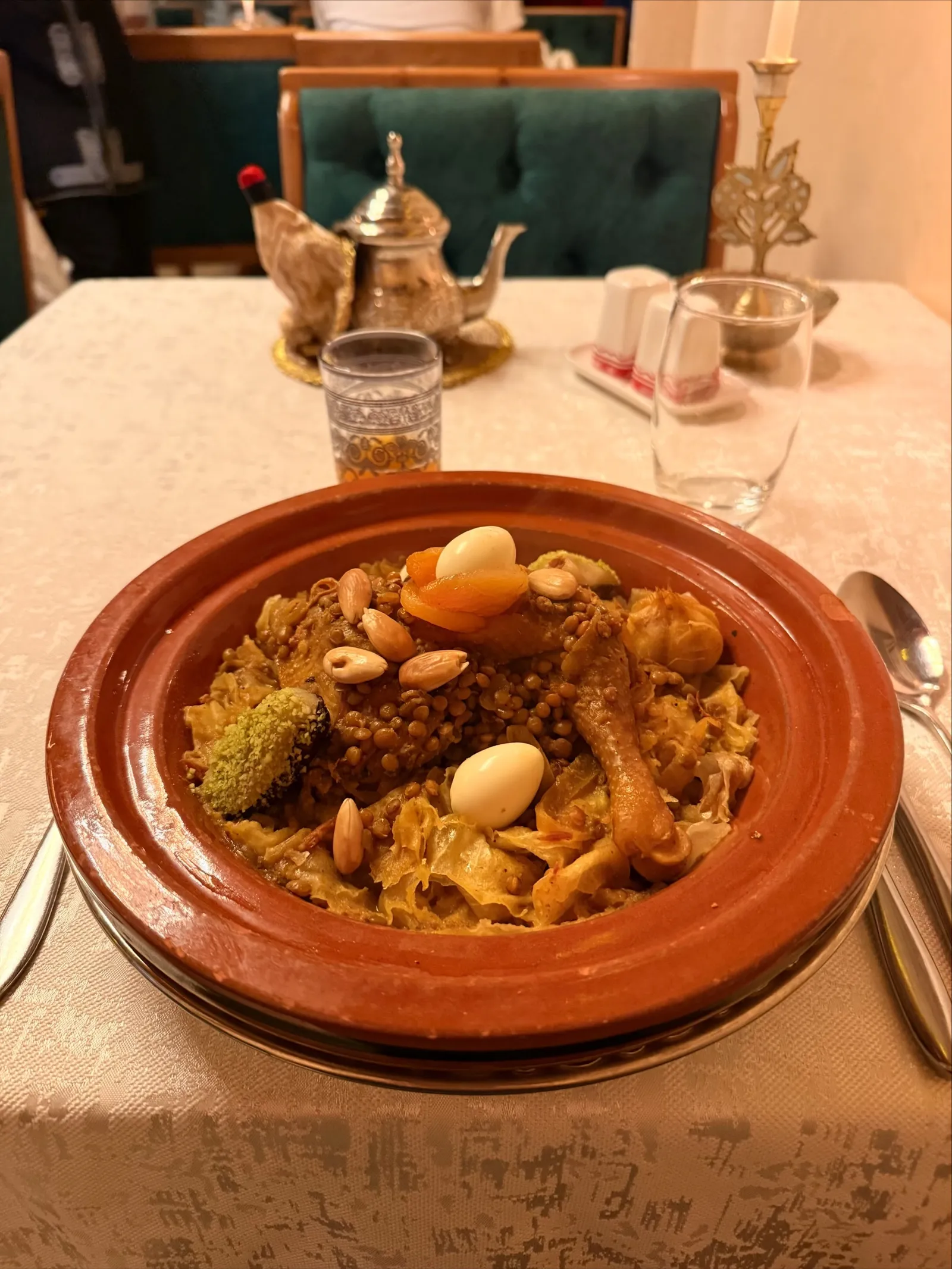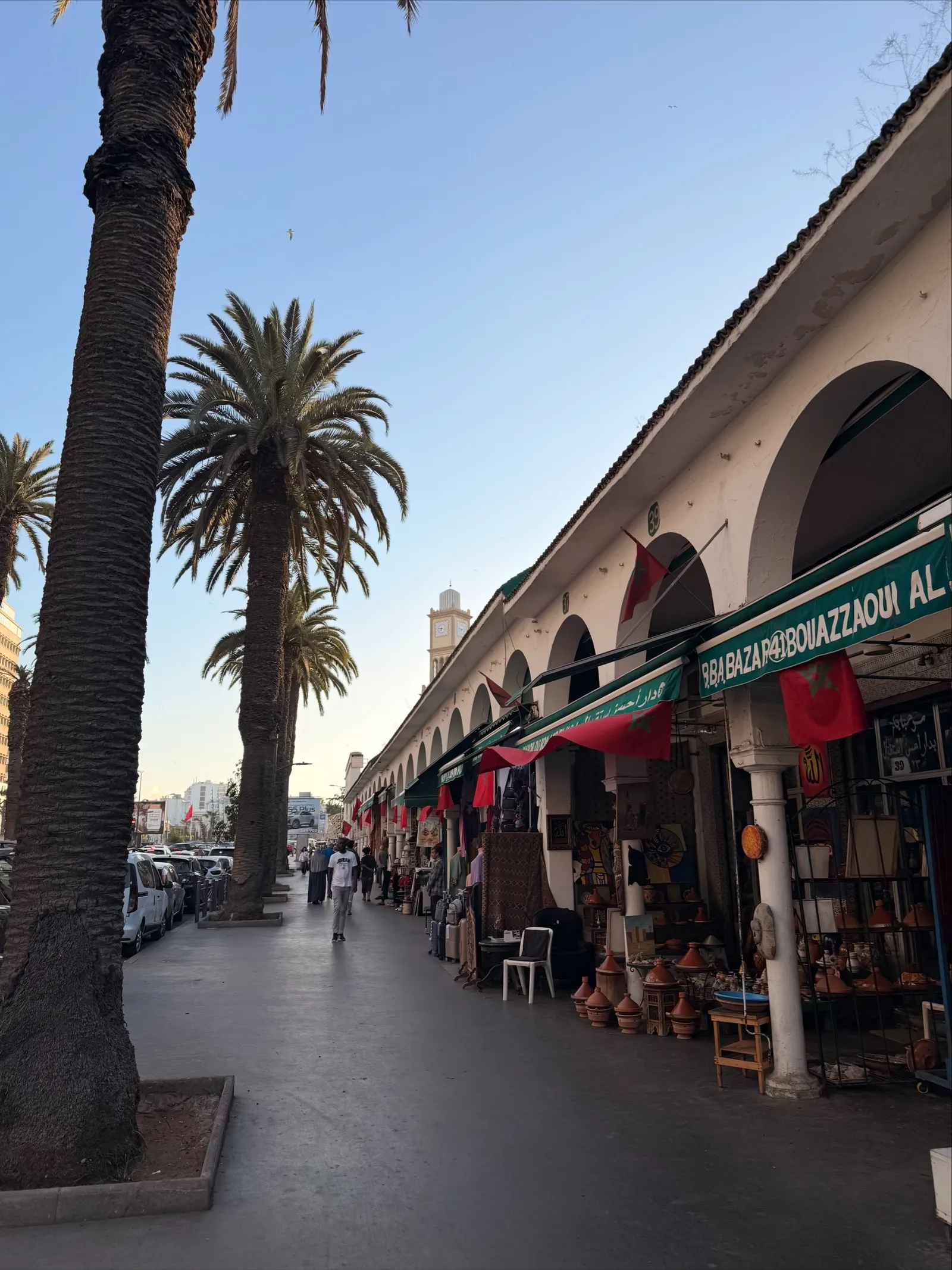 That evening I went for a walk along the boulevard at night and ventured into the old Medina. I stopped for dinner at Dar El Keid, an authentic Moroccan place tucked away inside the market. The food was excellent — my first proper Moroccan meal, and it set the tone for what was to come.