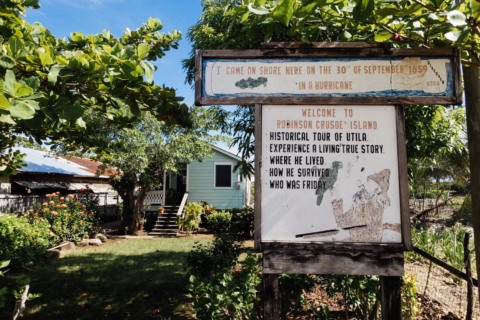 Local legend says that the island of Utila is the place of the fabled Robinson Crusoe, who shipwrecked on a tropical island, met a man he called Friday, and lived for 24 years marooned and seeking rescue